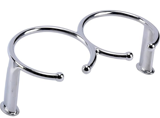Polished stainless steel marine grade. Sturdy flanged base for nicer fit and added strength. Open ring design, good for universal cups, cans, and mugs.